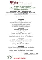 Menu de Fête pour le déjeuner de Noël à l’Auberge de Saint Didier