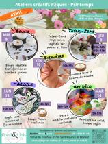 Atelier Prest&Link 10 rue du Tronfou, Saint-Maurice-de-Beynost, FranceDécouvrez des ateliers créatifs pour Pâques et le printemps, incluant la fabrication de bougies végétales, l'impression végétale Tataki-Zomé, des produits de bien-être, des créations en argile et de l'art déco.